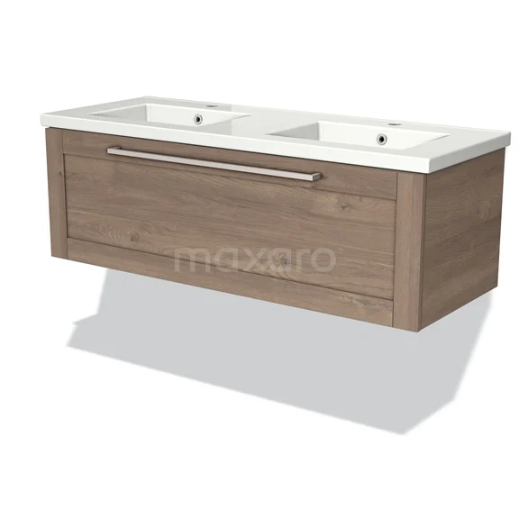 Modulo Vanity units with basin | 120 cm Mid brown oak Frame front Ceramic 1 drawer