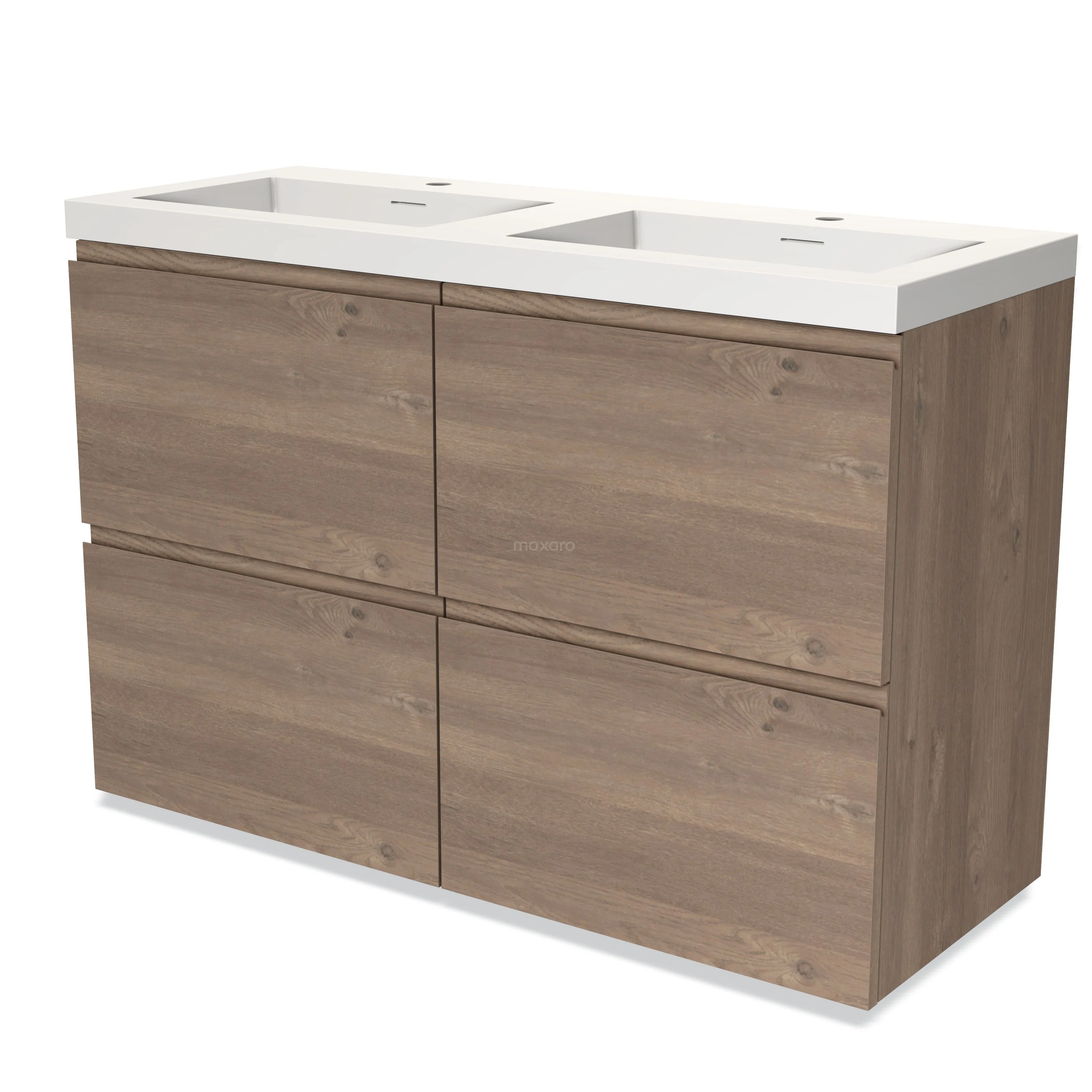 Modulo Bathroom furniture with sink | 120 cm Mid brown oak Handle-less front Solid surface 4 high drawers