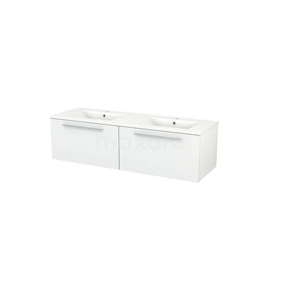 Modulo+ Vanity units with basin | 140 cm High-gloss white Flat front Ceramic 2 Side-by-side drawers