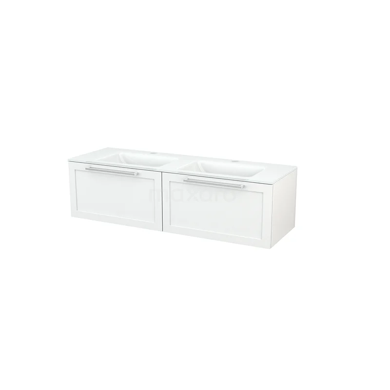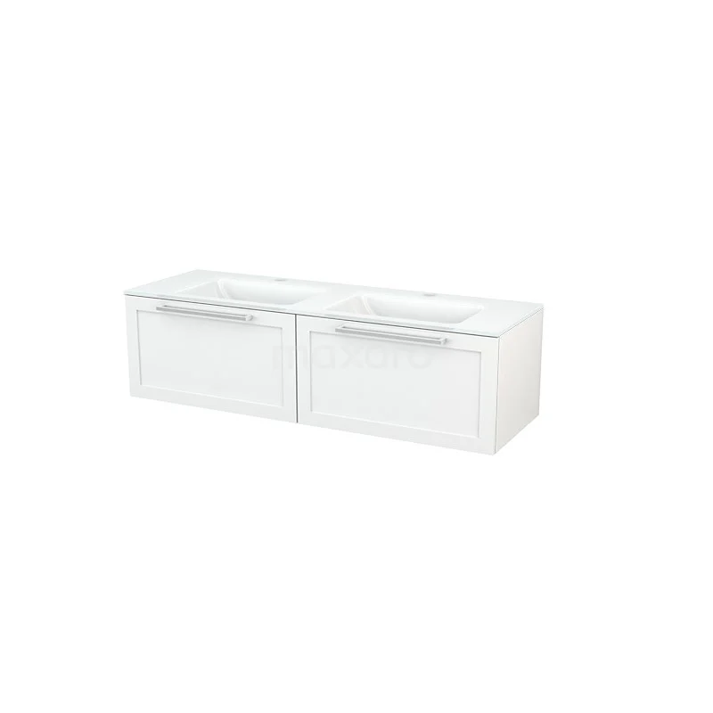 Modulo+ Vanity units with basin | 140 cm High-gloss white Frame front Glass 2 Side-by-side drawers