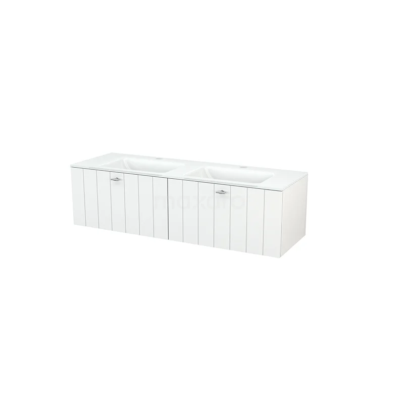 Modulo+ Vanity units with basin | 140 cm High-gloss white Slat front Glass 2 Side-by-side drawers