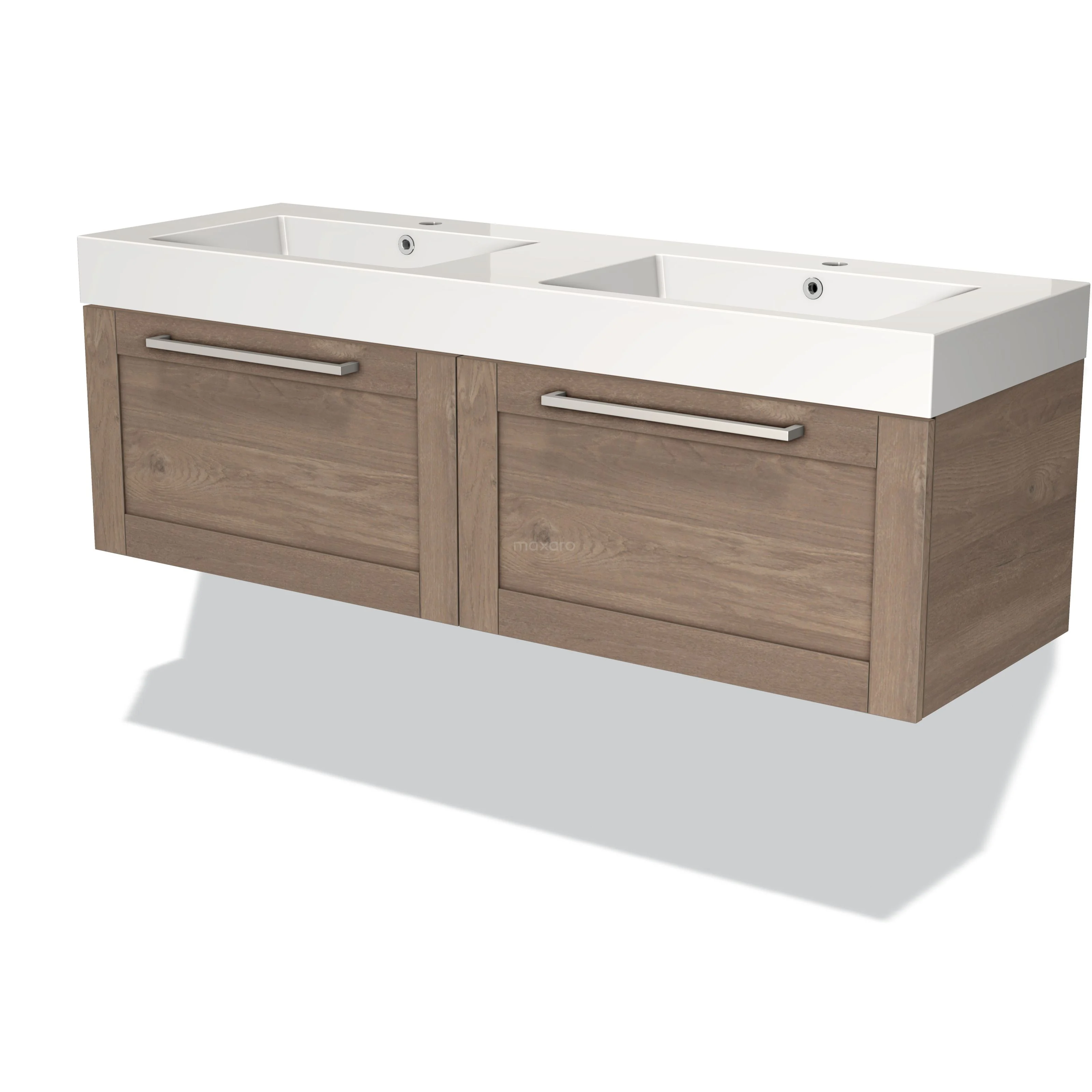 Modulo Vanity units with basin | 140 cm Mid brown oak Frame front Mineral marble 2 Side-by-side drawers