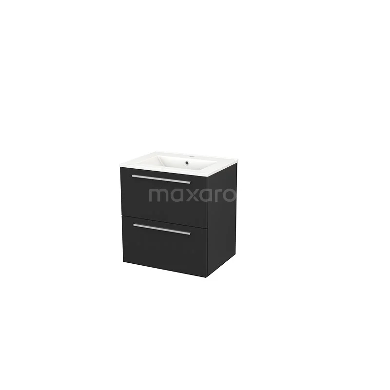 Modulo+ Bathroom furniture with sink | 60 cm Carbon Flat front Ceramic 2 Stacked drawers