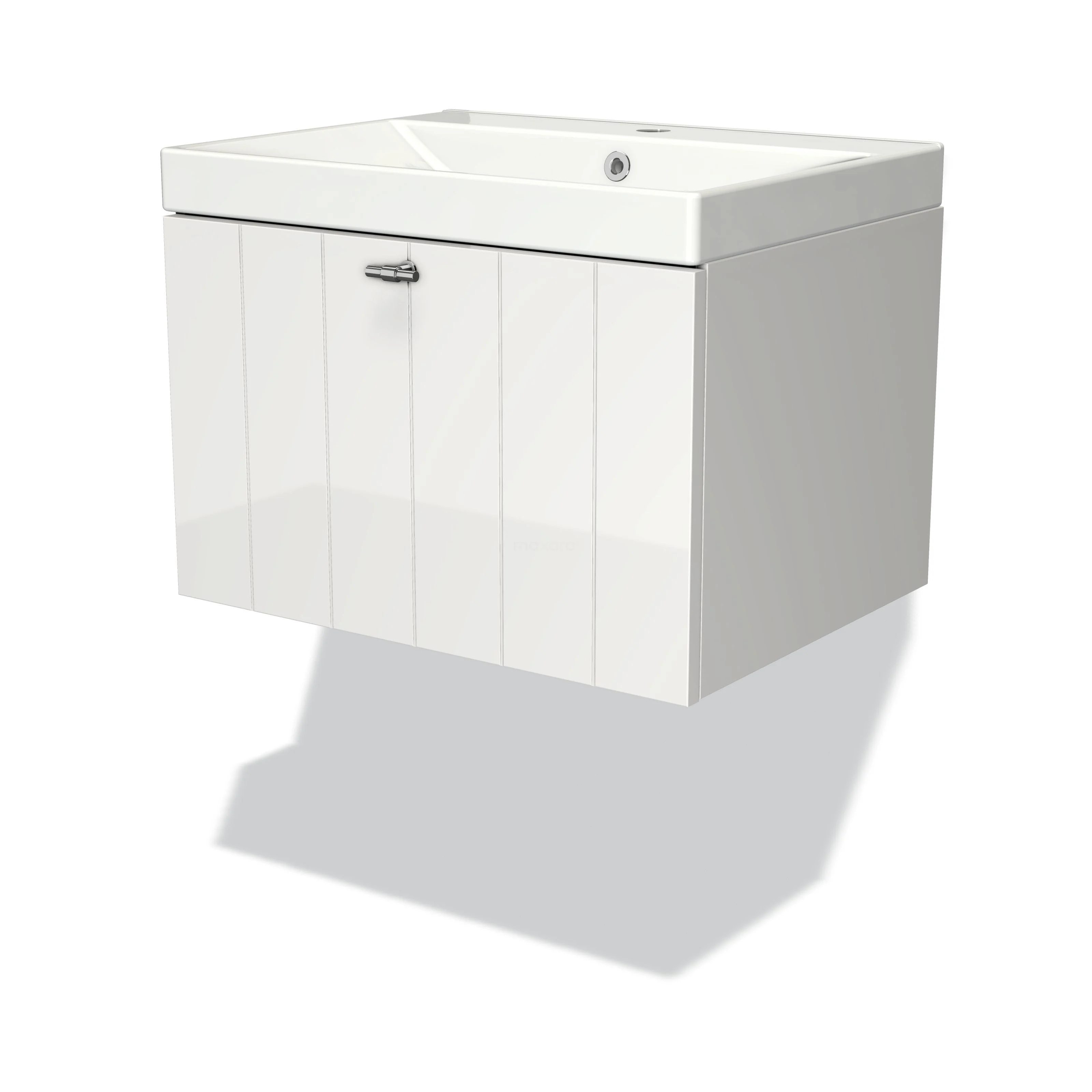 Modulo Vanity units with basin | 60 cm High-gloss white Slat front Ceramic 1 drawer