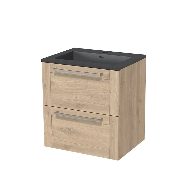Modulo Vanity units with basin | 60 cm Light brown oak Frame front Quartz 2 Stacked drawers