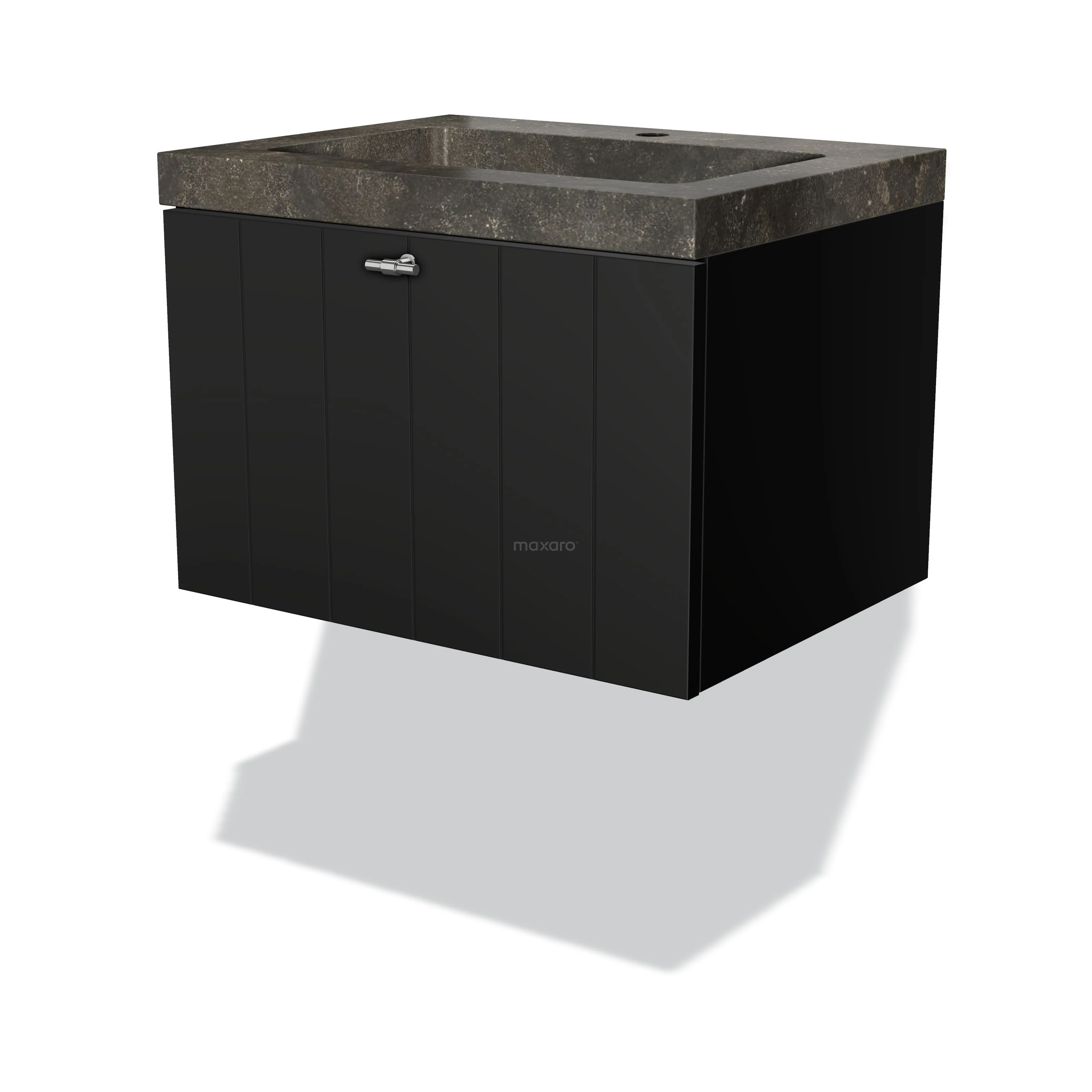 Modulo Vanity units with basin | 60 cm Matte black Slat front Natural stone 1 drawer
