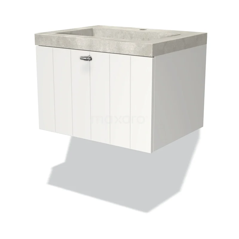 Modulo Vanity units with basin | 60 cm Matte white Slat front Concrete 1 drawer