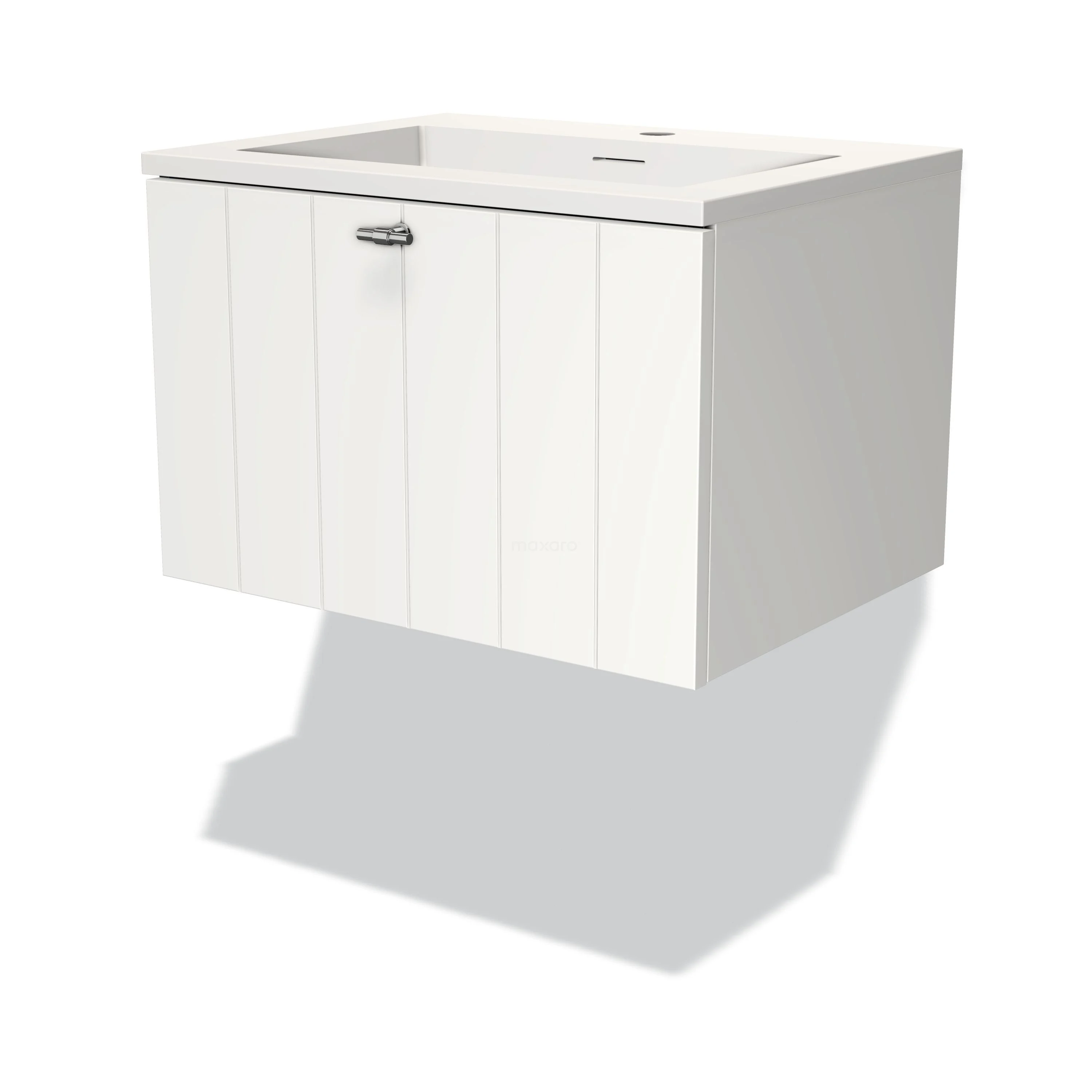 Modulo Vanity units with basin | 60 cm Matte white Slat front Solid surface 1 drawer