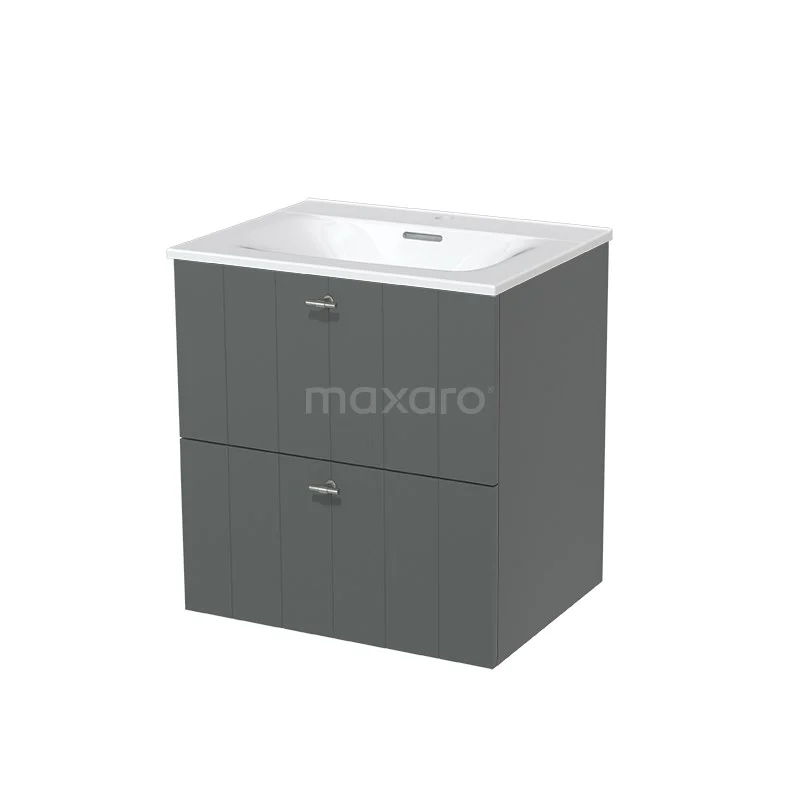 Modulo Vanity units with basin | 60 cm Mid grey Slat front Ceramic 2 Stacked drawers