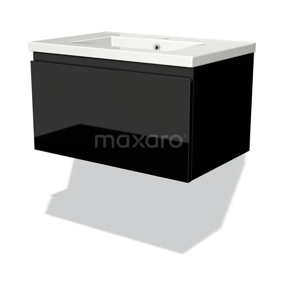 Modulo Vanity units with basin | 70 cm High-gloss black Handle-less front Ceramic 1 drawer