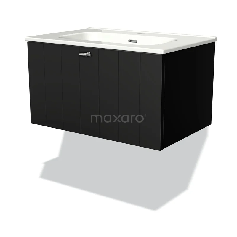 Modulo Vanity units with basin | 70 cm Matte black Slat front Ceramic 1 drawer