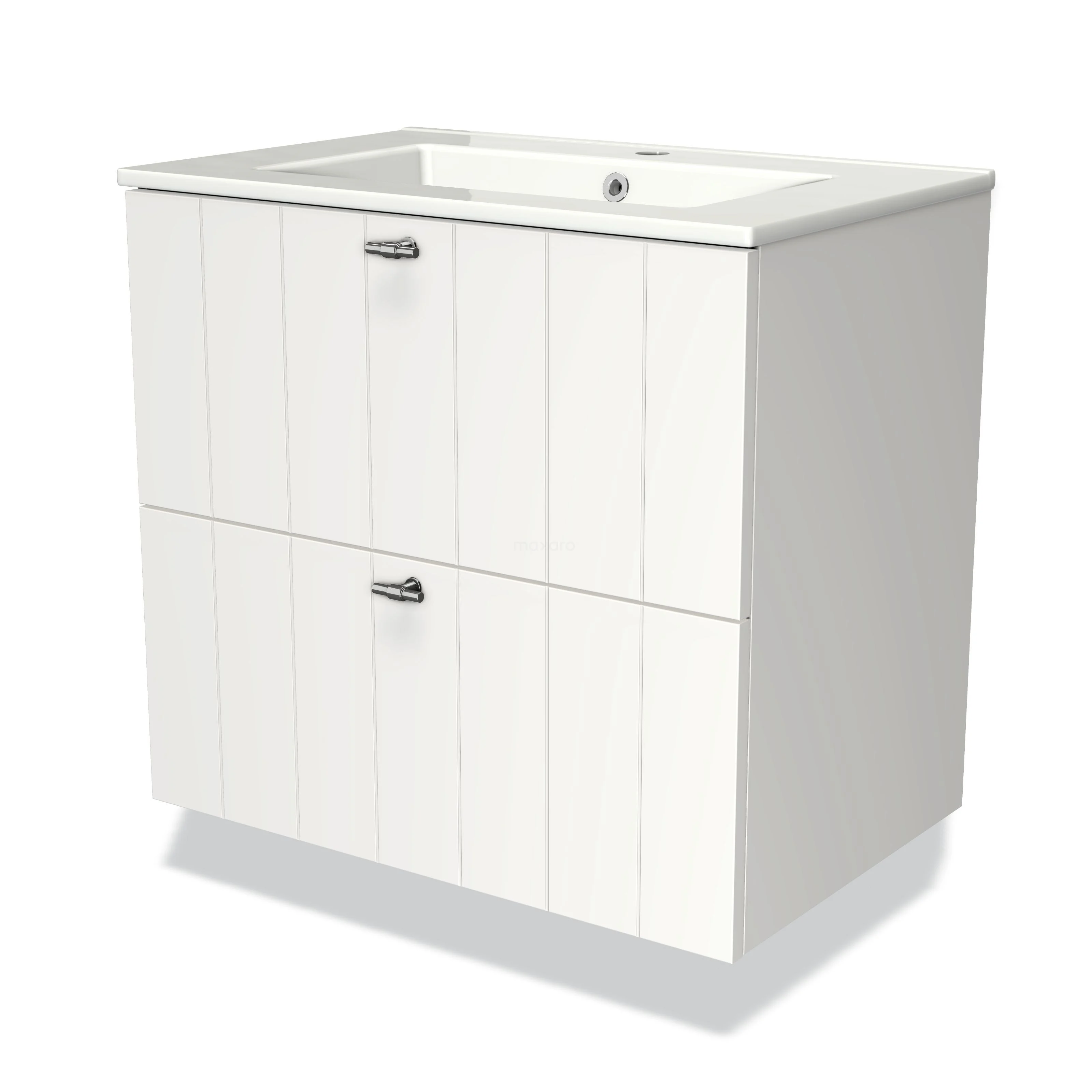 Modulo Vanity units with basin | 70 cm Matte white Slat front Ceramic 2 Stacked drawers