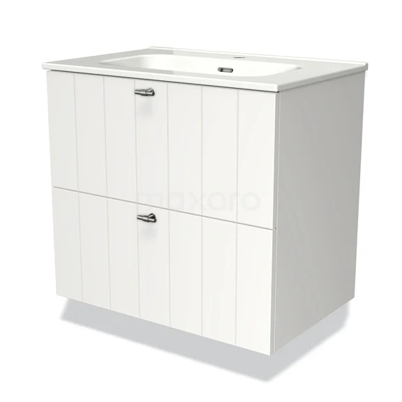 Modulo Vanity units with basin | 70 cm Matte white Slat front Ceramic 2 Stacked drawers