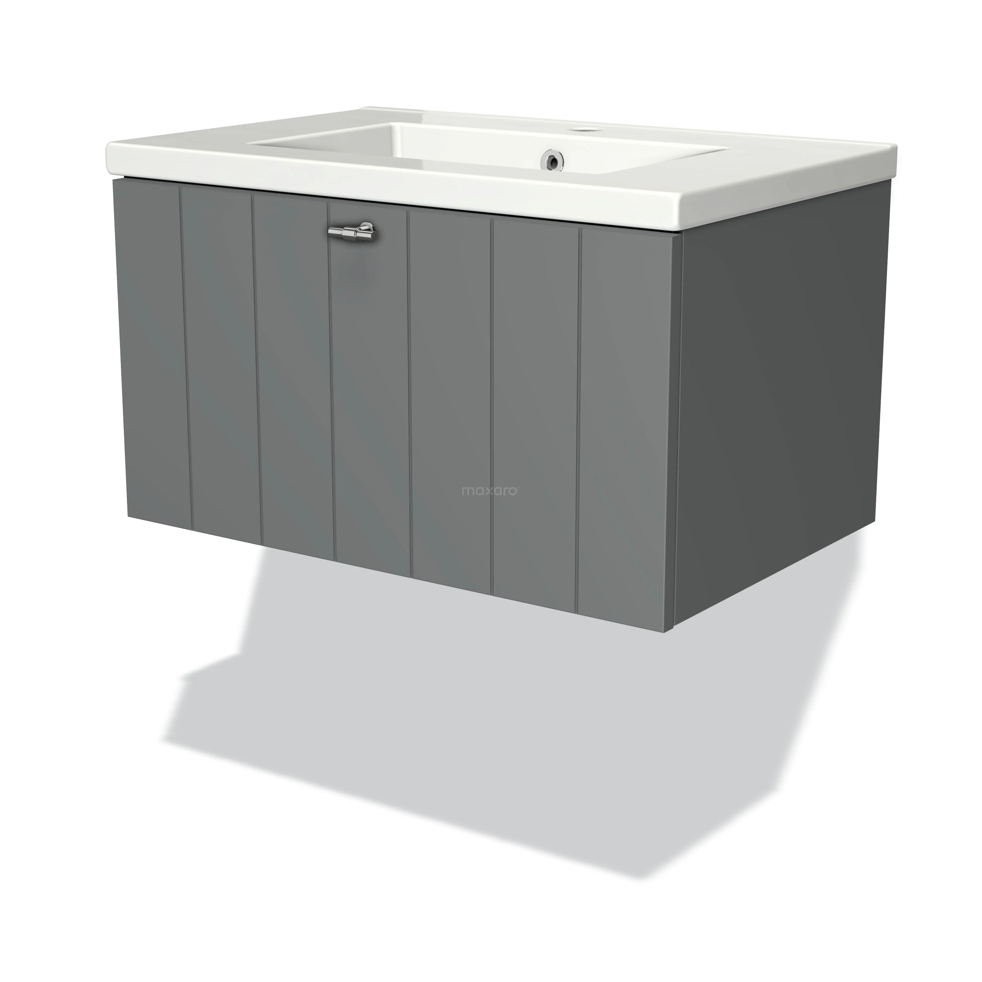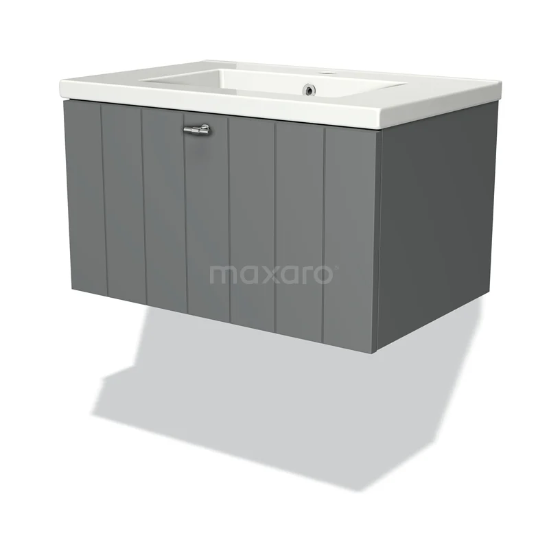 Modulo Vanity units with basin | 70 cm Mid grey Slat front Ceramic 1 drawer