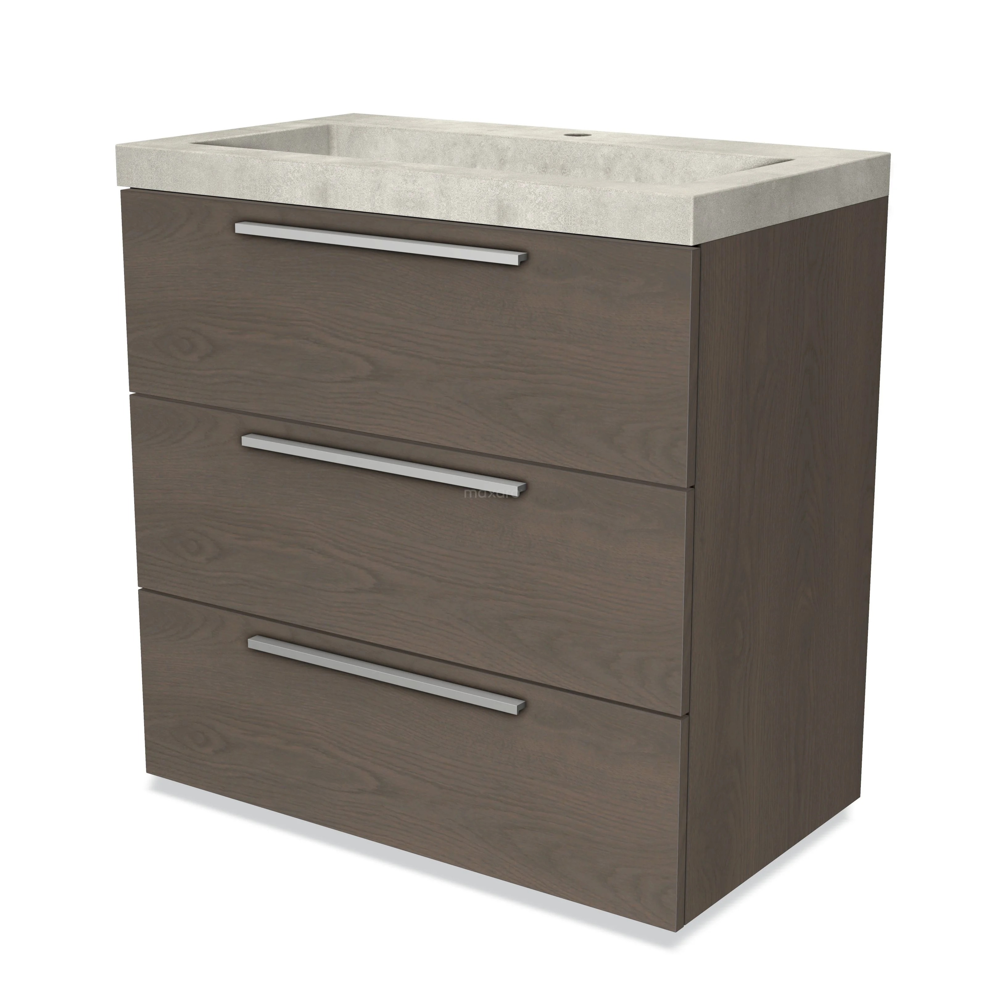 Modulo Bathroom furniture with sink | 80 cm Dark brown oak Flat front Concrete 3 drawers