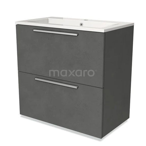 Modulo Bathroom furniture with sink | 80 cm Dark grey concrete Flat front Mineral marble 2 stacked drawers under each other