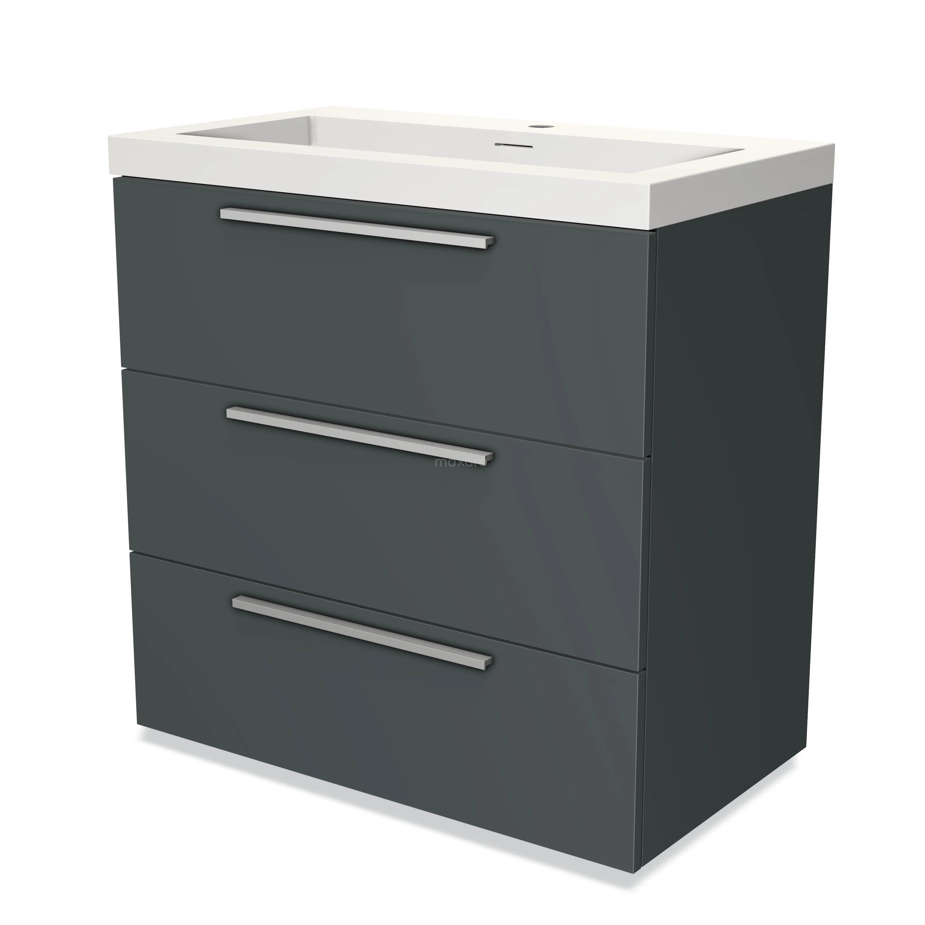 Modulo Bathroom furniture with sink | 80 cm Dark grey Flat front Solid surface 3 drawers