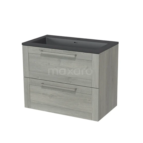 Modulo Vanity units with basin | 80 cm Grey oak Frame front Quartz 2 Stacked drawers