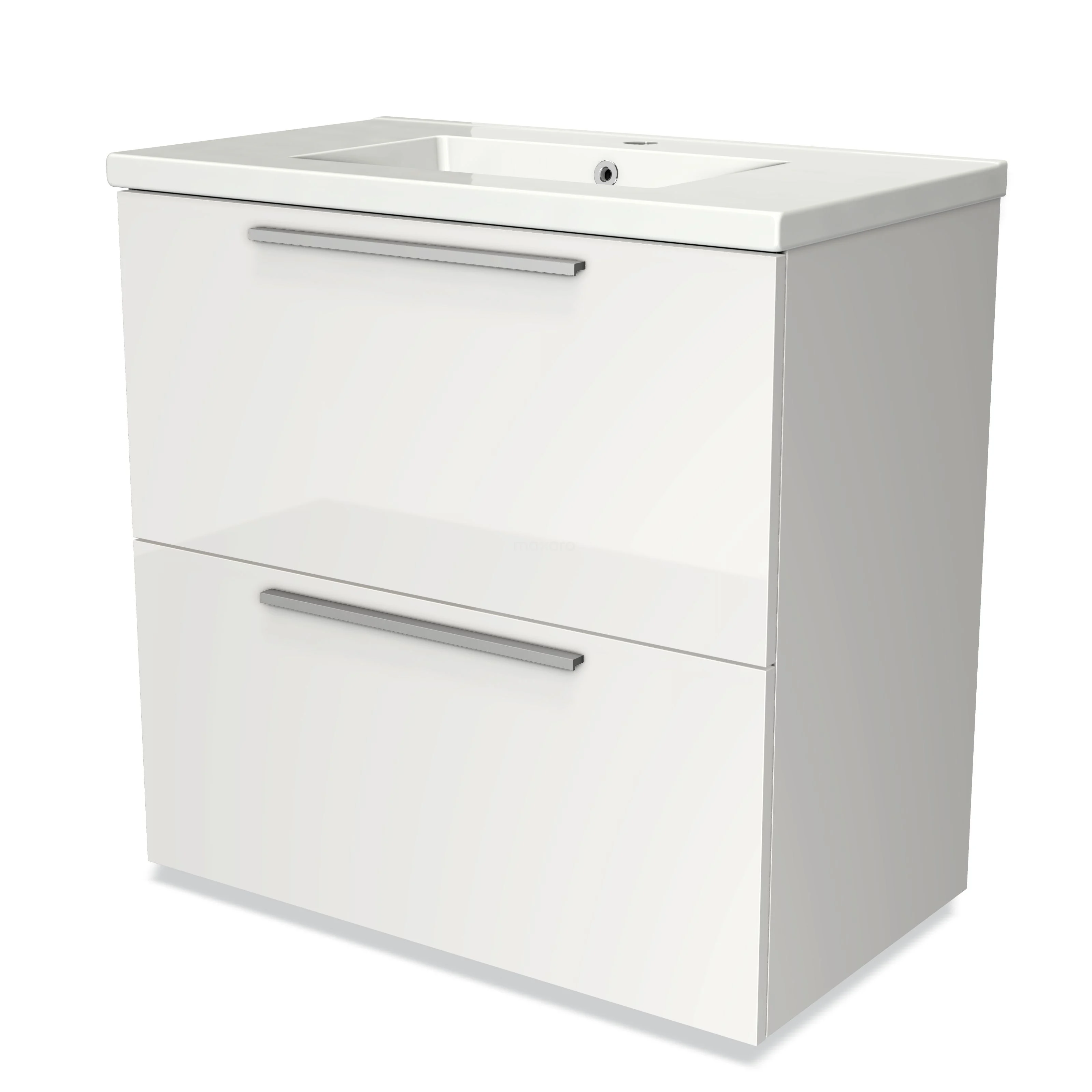 Modulo Vanity units with basin | 80 cm High-gloss white Flat front Ceramic 2 stacked drawers under each other