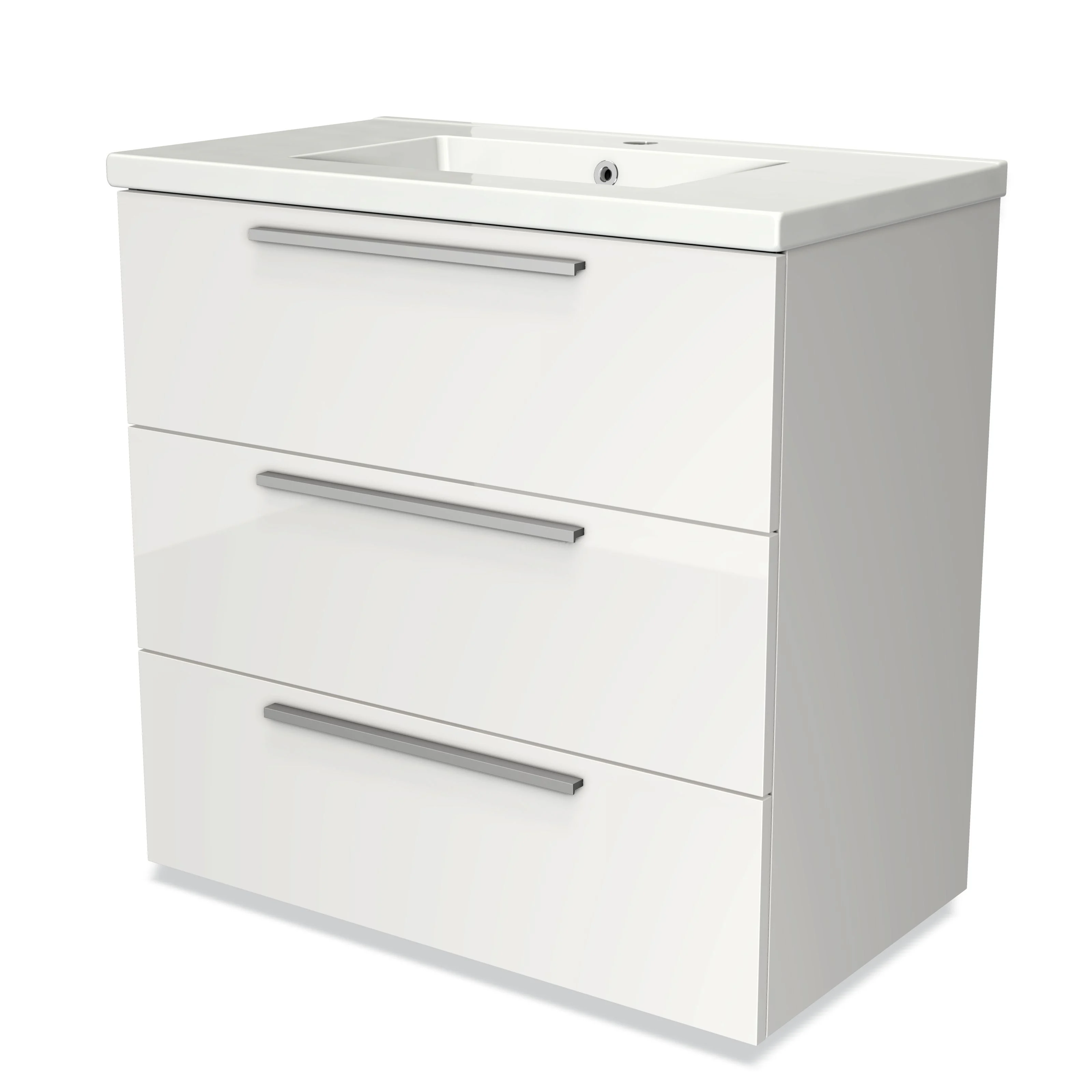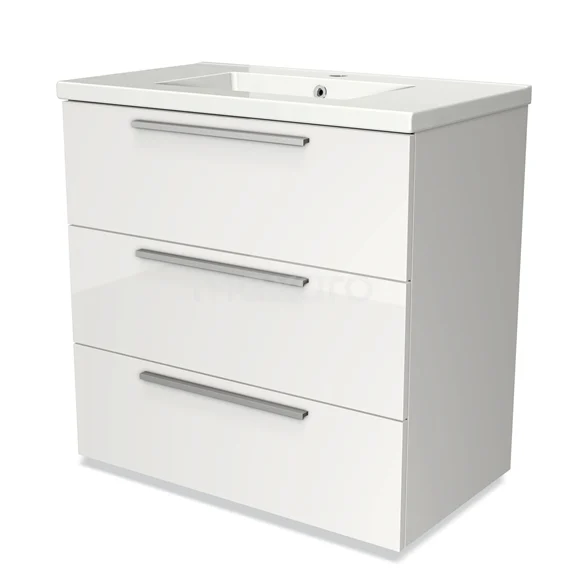 Modulo Vanity units with basin | 80 cm High-gloss white Flat front Ceramic 3 drawers