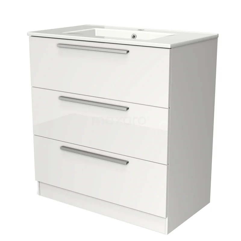 Modulo Bathroom furniture with sink | 80 cm High-gloss white Flat front Ceramic 3 standing drawers