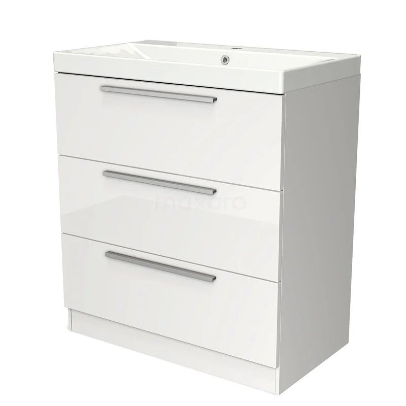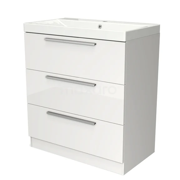 Modulo Bathroom furniture with sink | 80 cm High-gloss white Flat front Ceramic 3 standing drawers
