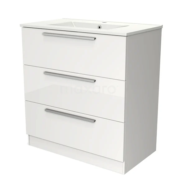Modulo Bathroom furniture with sink | 80 cm High-gloss white Flat front Ceramic 3 standing drawers