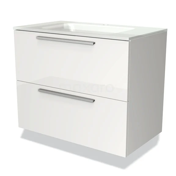 Modulo Vanity units with basin | 80 cm High-gloss white Flat front Glass 2 Stacked drawers
