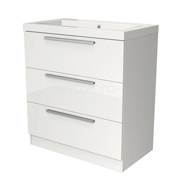 Modulo Bathroom furniture with sink | 80 cm High-gloss white Flat front Mineral marble 3 standing drawers