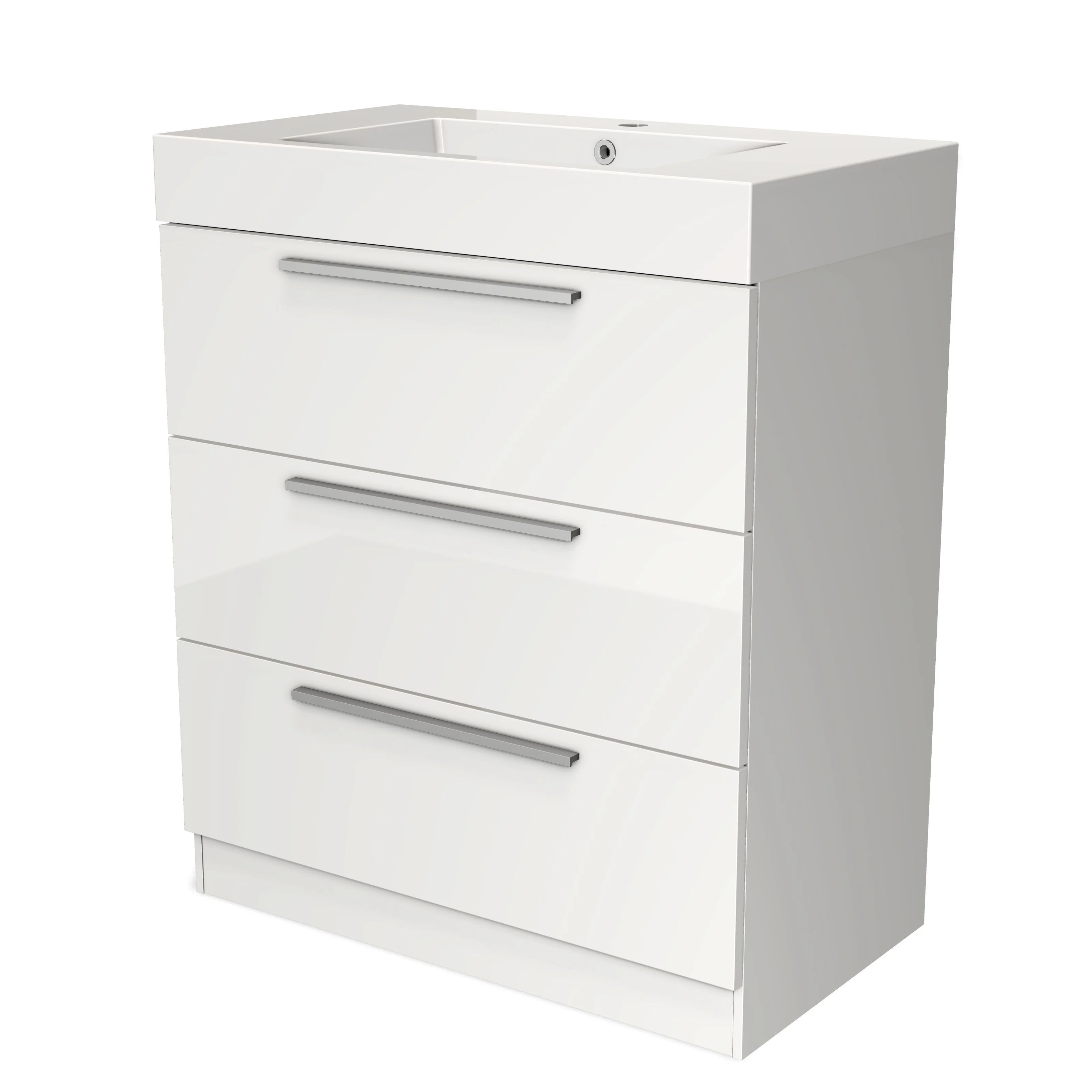 Modulo Bathroom furniture with sink | 80 cm High-gloss white Flat front Mineral marble 3 standing drawers