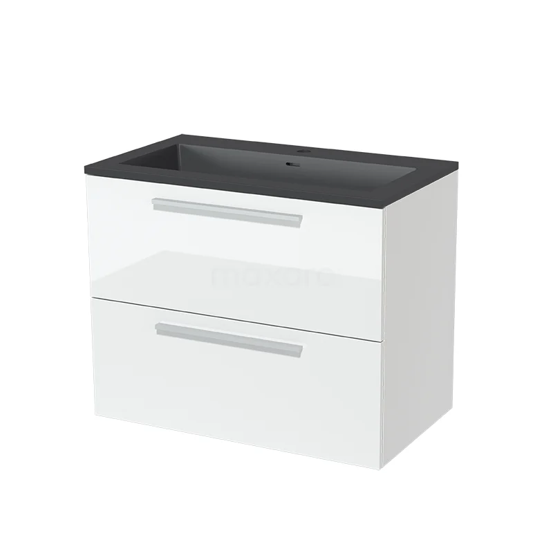 Modulo Vanity units with basin | 80 cm High-gloss white Flat front Quartz 2 Stacked drawers