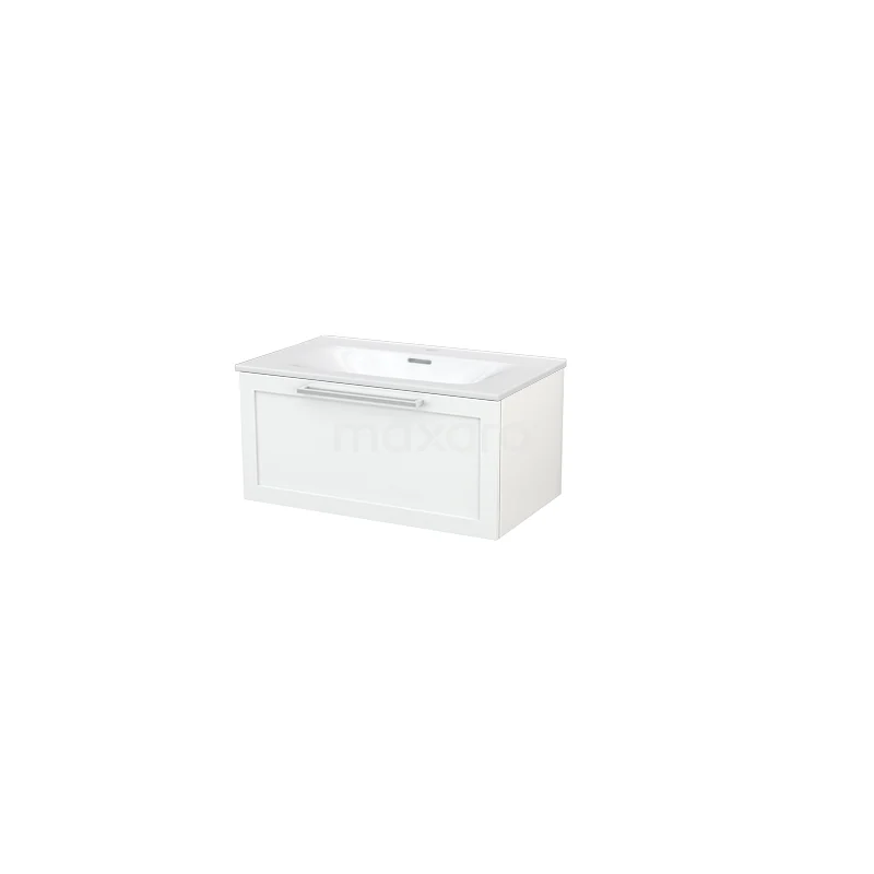 Modulo+ Vanity units with basin | 80 cm High-gloss white Frame front Ceramic 1 drawer