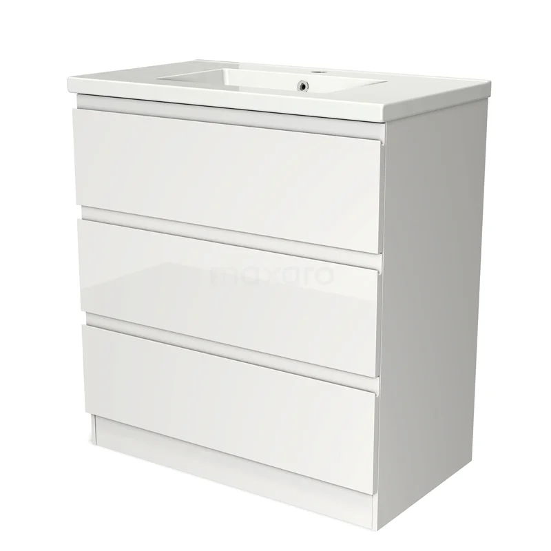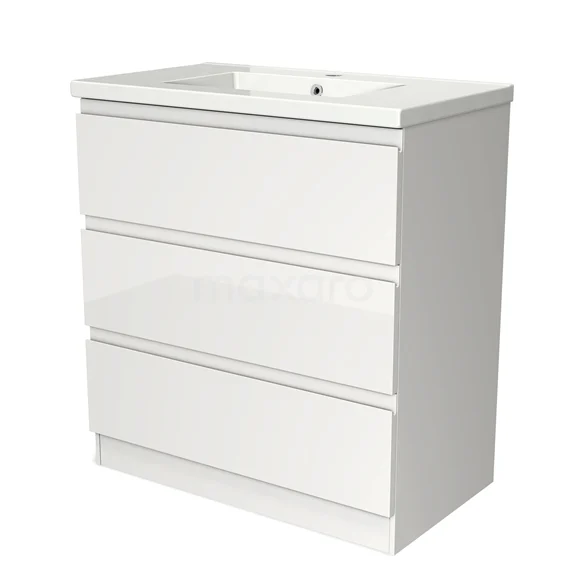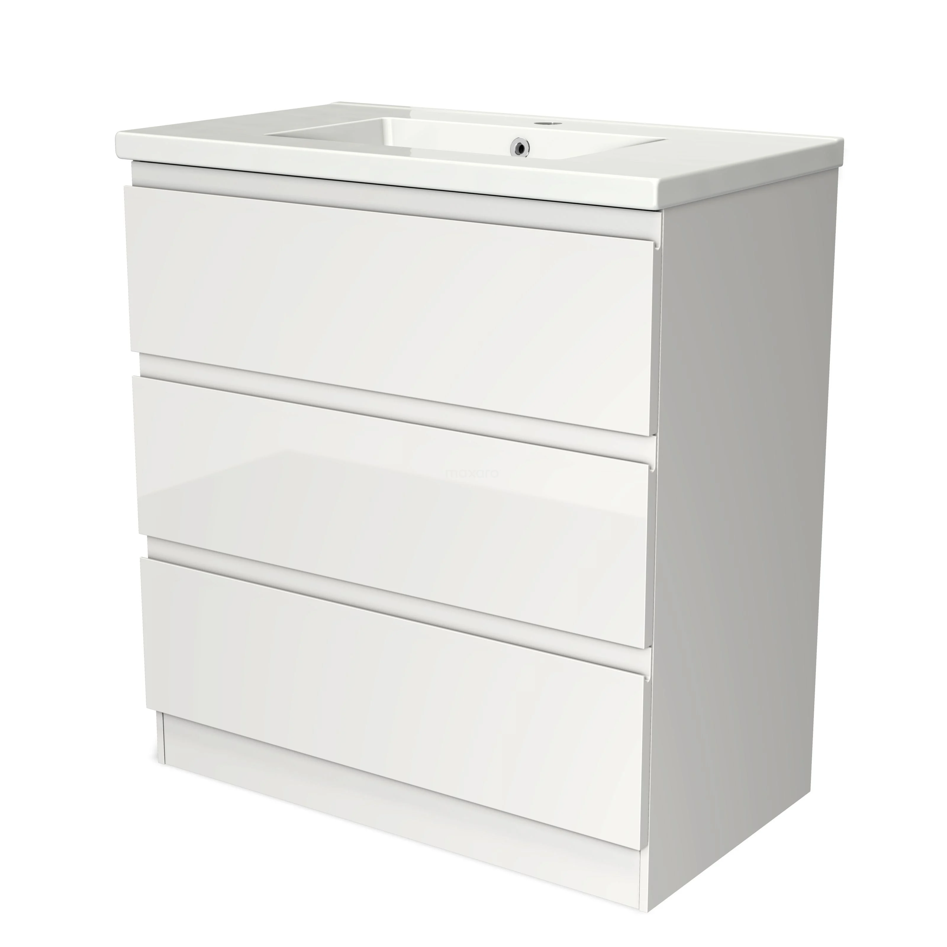 Modulo Vanity units with basin | 80 cm High-gloss white Handle-less front Ceramic 3 standing drawers