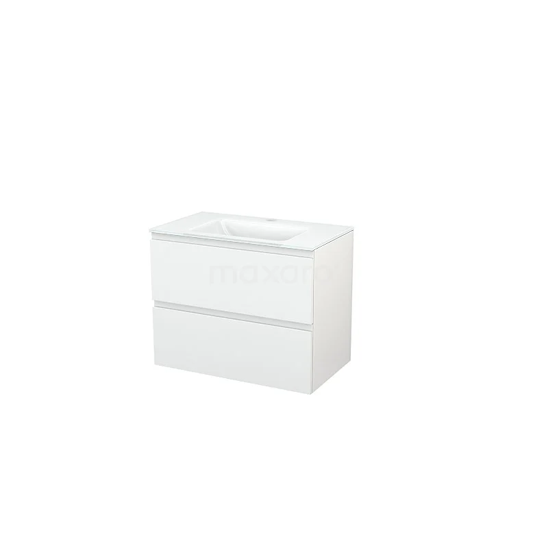 Modulo+ Vanity units with basin | 80 cm High-gloss white Handle-less front Glass 2 Stacked drawers