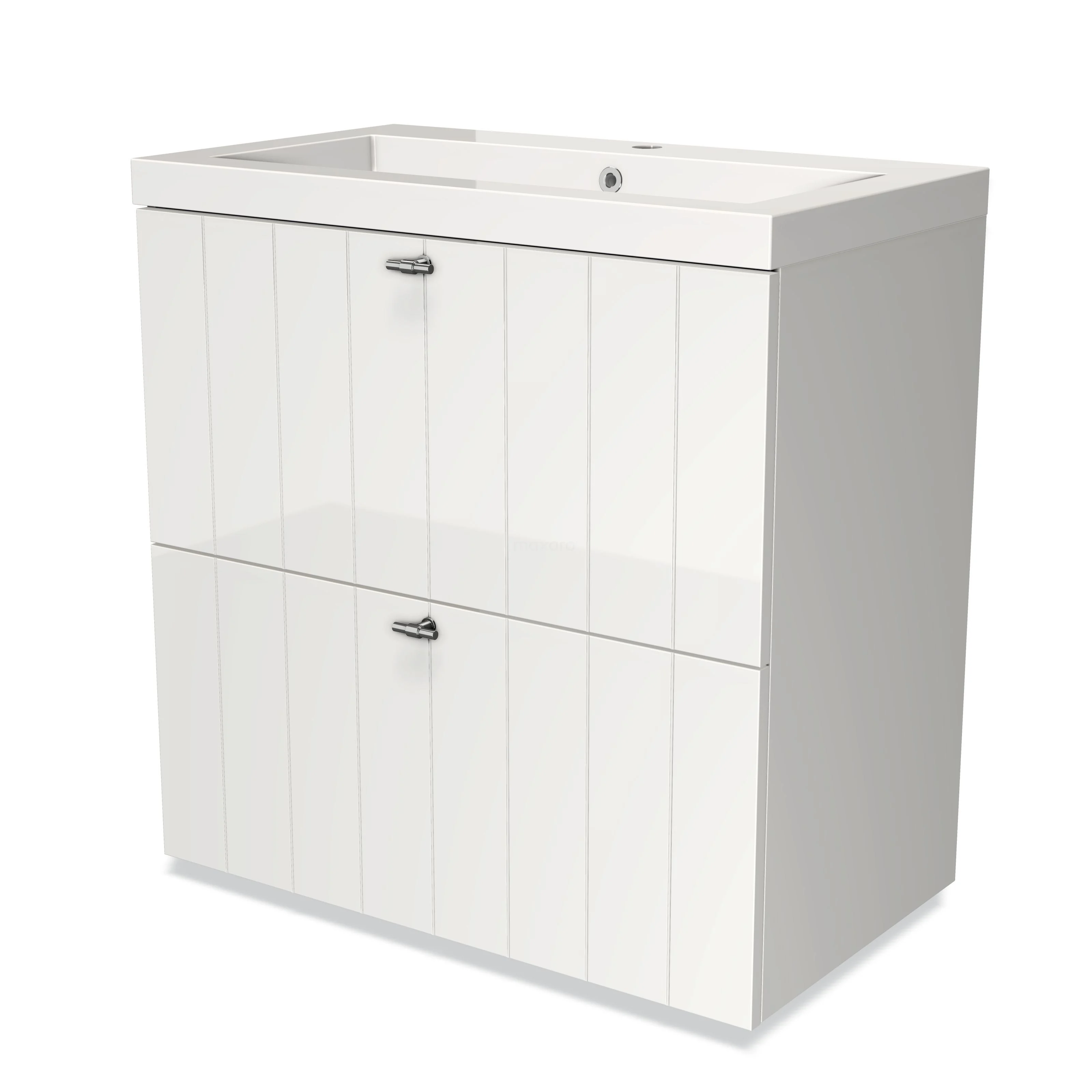 Modulo Vanity units with basin | 80 cm High-gloss white Slat front Mineral marble 2 stacked drawers under each other