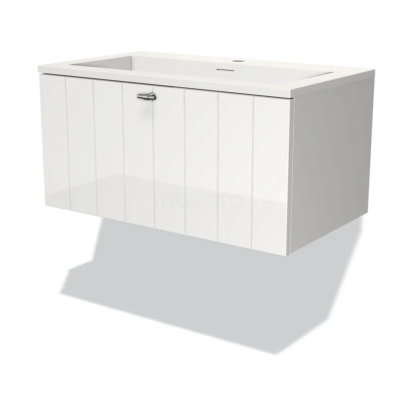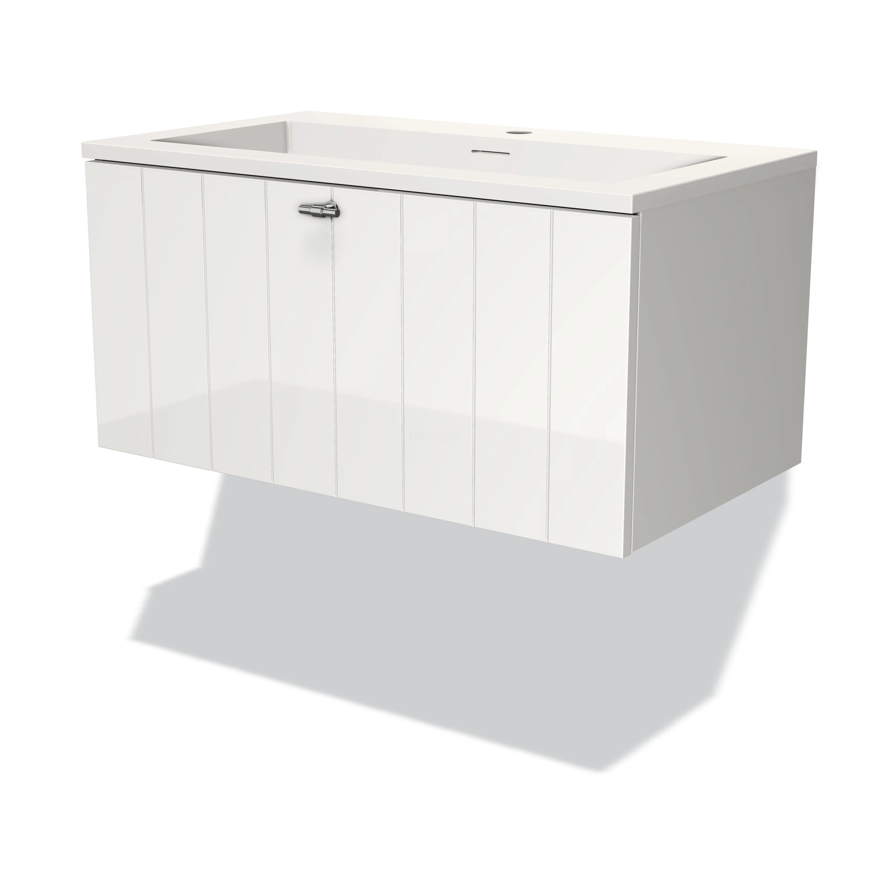 Modulo Vanity units with basin | 80 cm High-gloss white Slat front Solid surface 1 drawer