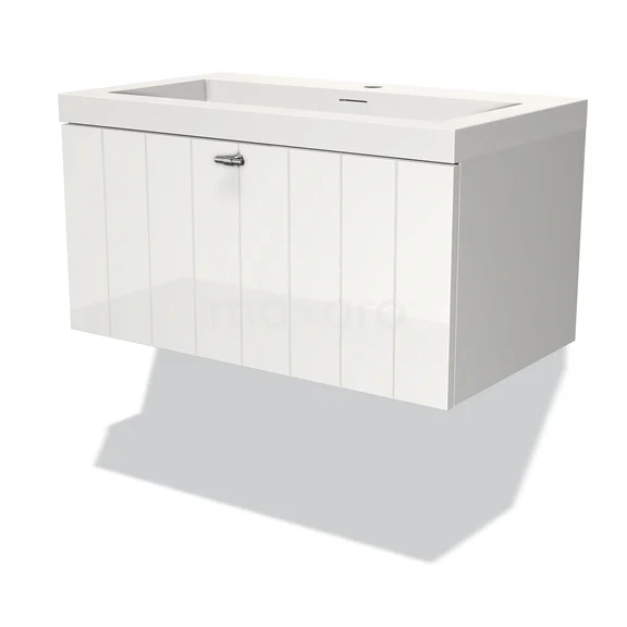 Modulo Vanity units with basin | 80 cm High-gloss white Slat front Solid surface 1 drawer