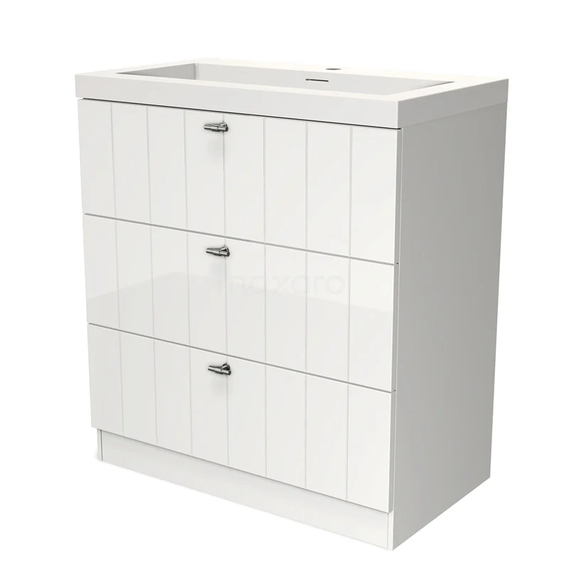 Modulo Vanity units with basin | 80 cm High-gloss white Slat front Solid surface 3 standing drawers