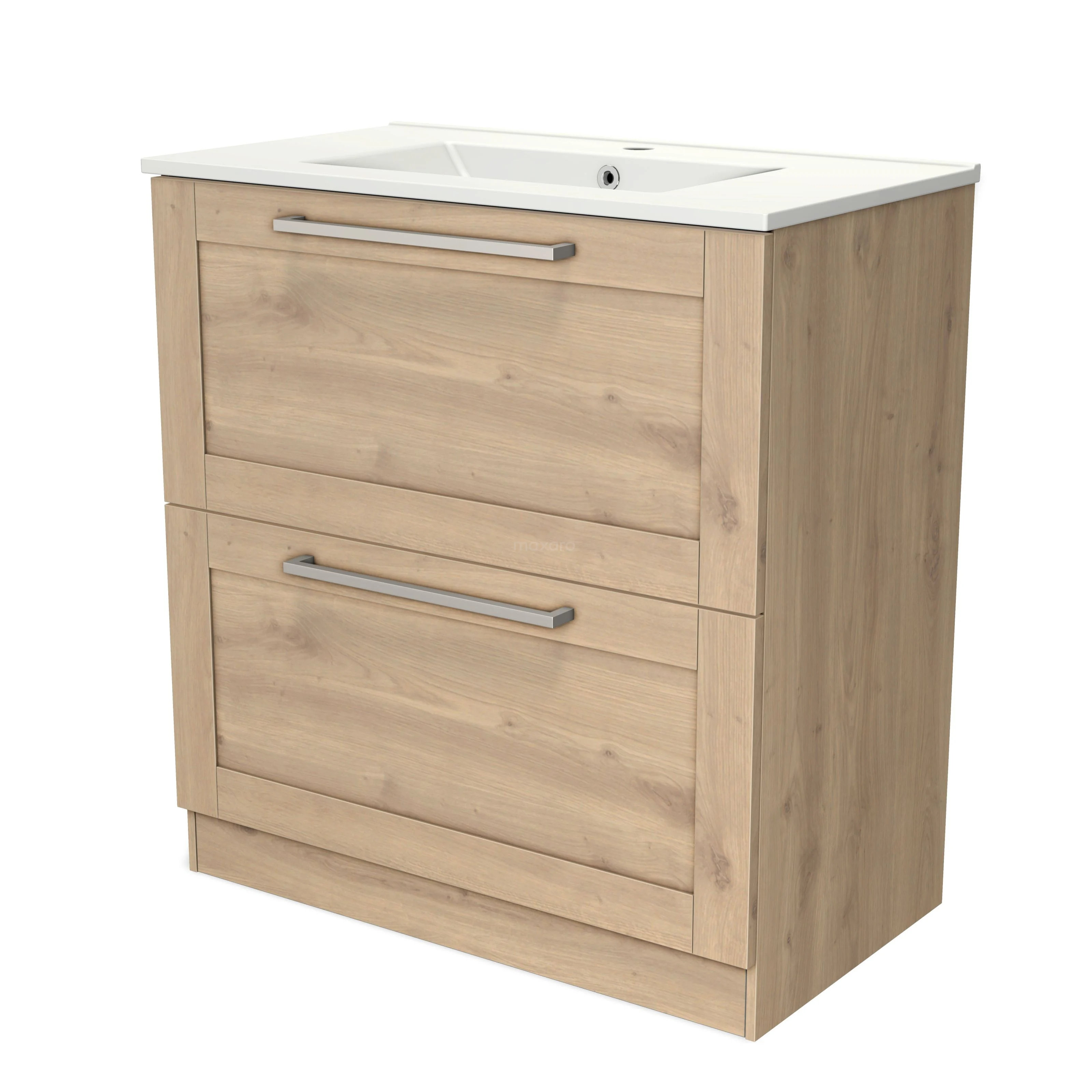 Modulo Vanity units with basin | 80 cm Light brown oak Frame front Ceramic 2 high drawers standing drawers under each other