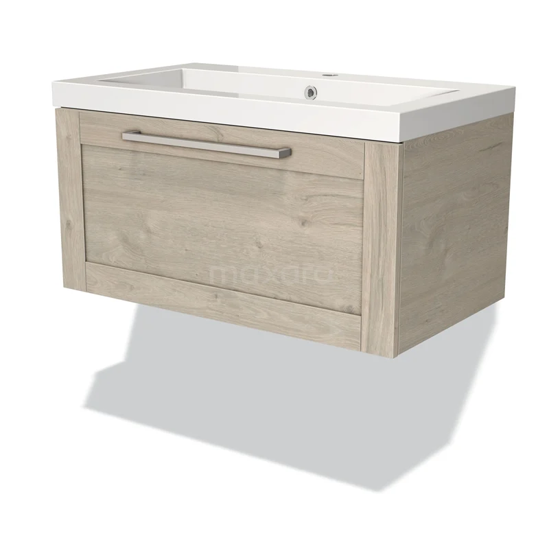 Modulo Vanity units with basin | 80 cm Light grey oak Frame front Mineral marble 1 drawer