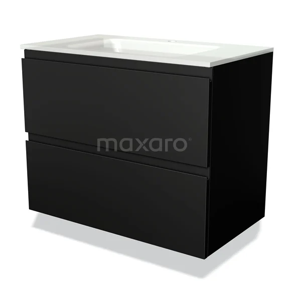 Modulo Vanity units with basin | 80 cm Matte black Handle-less front Glass 2 Stacked drawers
