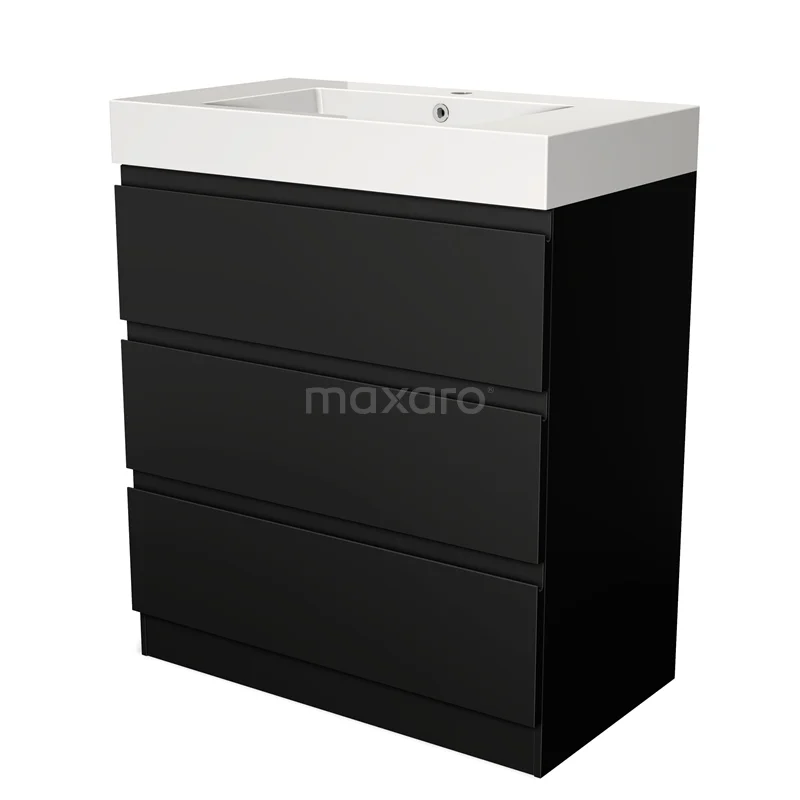 Modulo Bathroom furniture with sink | 80 cm Matte black Handle-less front Mineral marble 3 standing drawers
