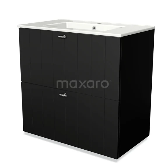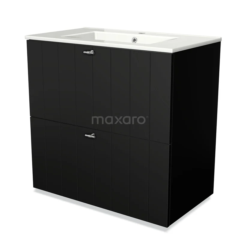 Modulo Vanity units with basin | 80 cm Matte black Slat front Ceramic 2 stacked drawers under each other