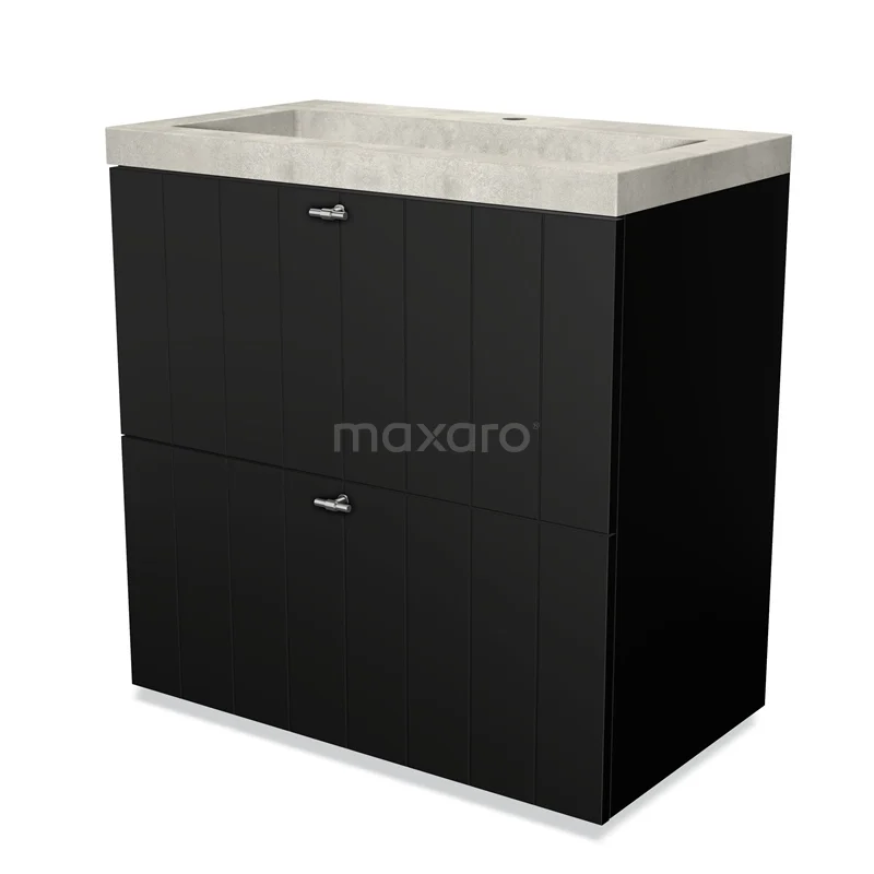 Modulo Vanity units with basin | 80 cm Matte black Slat front Concrete 2 stacked drawers under each other