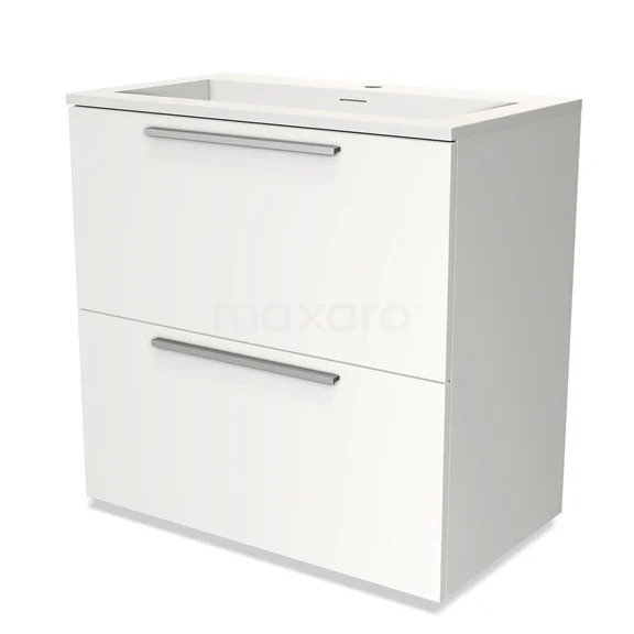 Modulo Vanity units with basin | 80 cm Matte white Flat front Solid surface 2 stacked drawers under each other