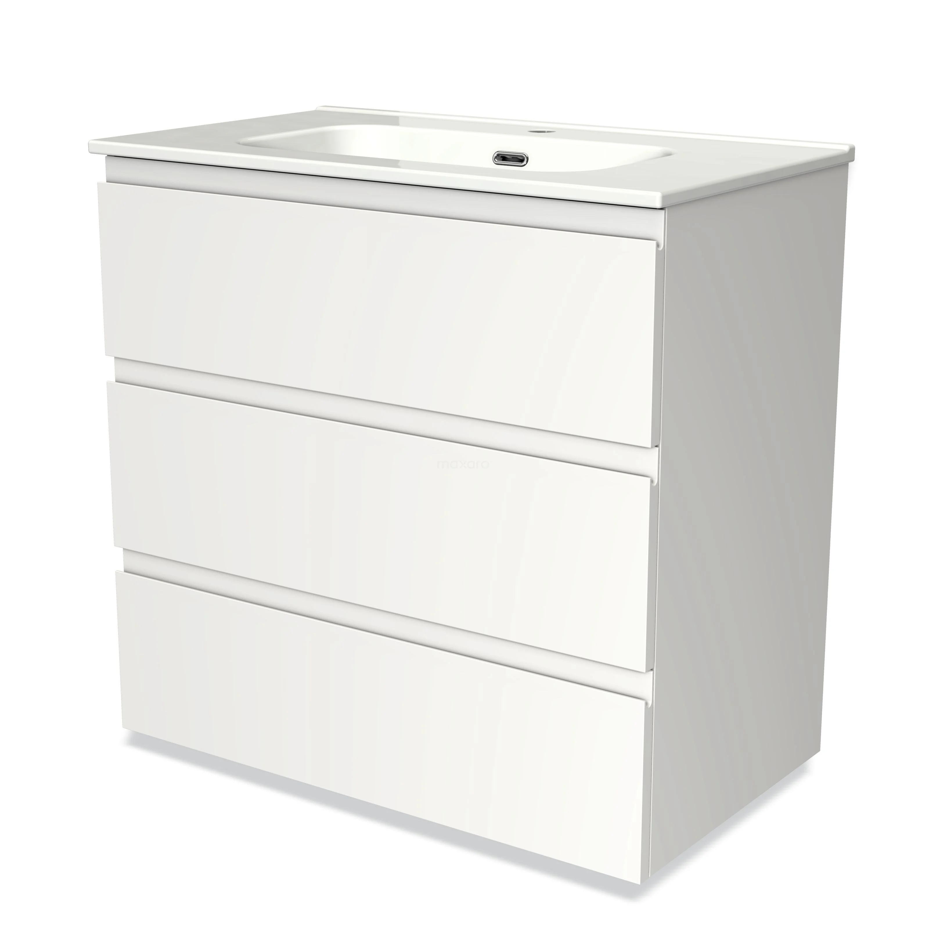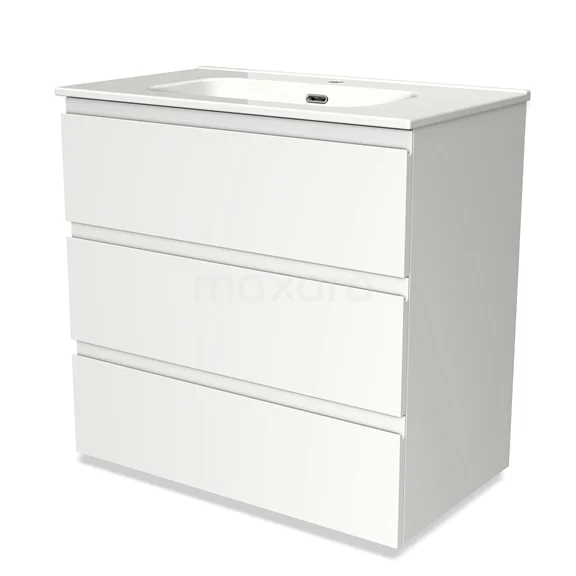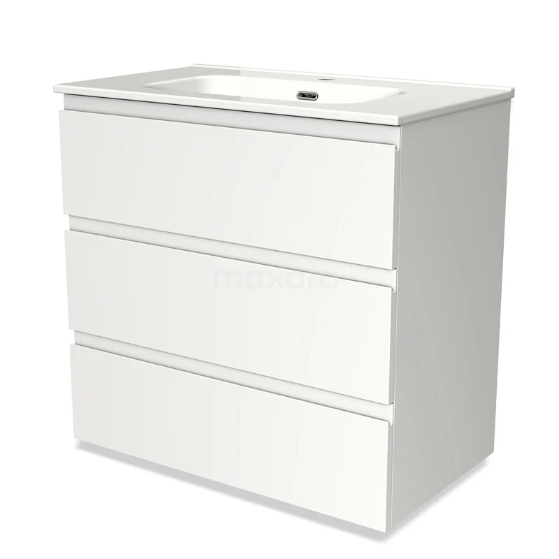 Modulo Bathroom furniture with sink | 80 cm Matte white Handle-less front Ceramic 3 drawers