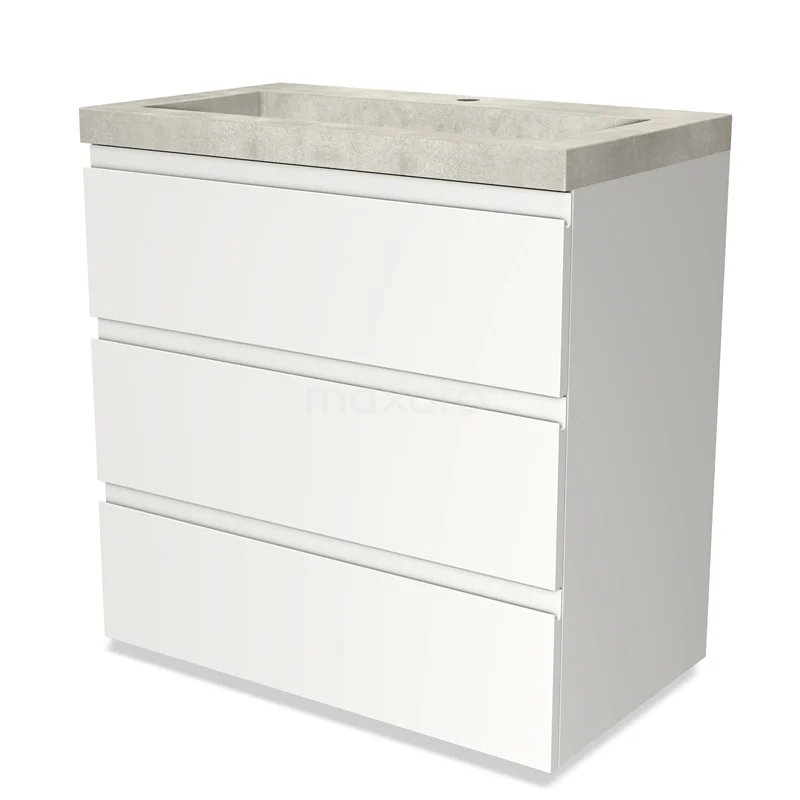 Modulo Bathroom furniture with sink | 80 cm Matte white Handle-less front Concrete 3 drawers