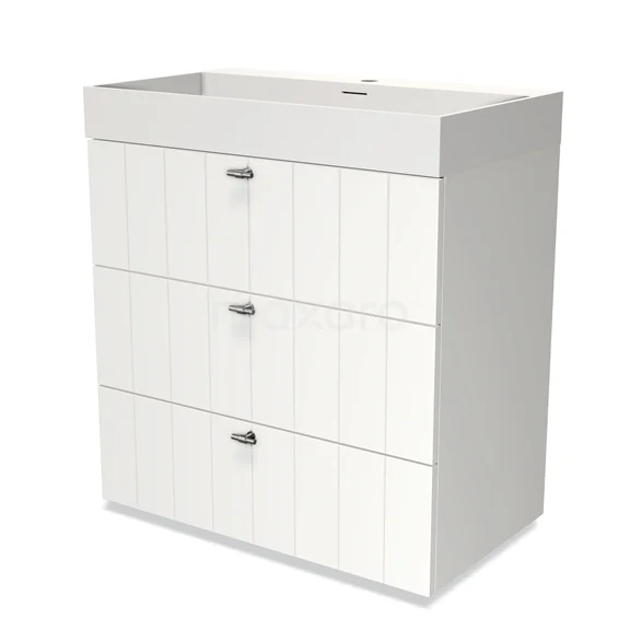 Modulo Vanity units with basin | 80 cm Matte white Slat front Solid surface 3 drawers