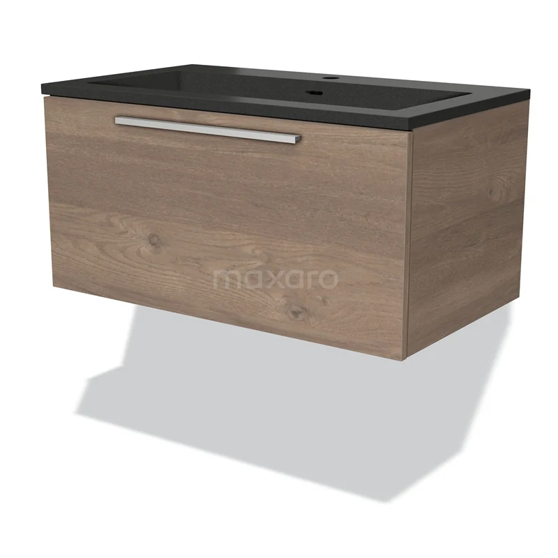 Modulo Vanity units with basin | 80 cm Mid brown oak Flat front Quartz 1 drawer