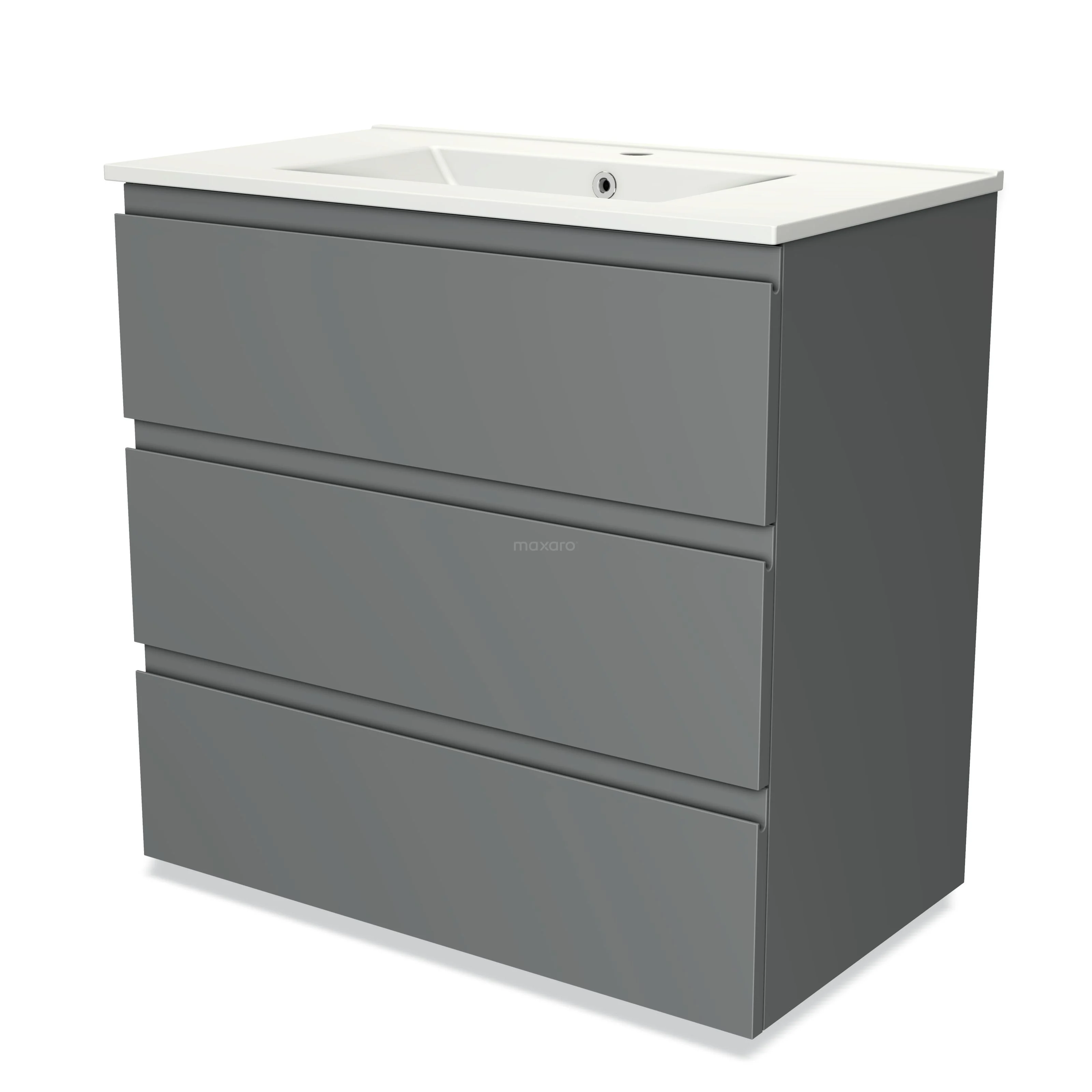 Modulo Vanity units with basin | 80 cm Mid grey Handle-less front Ceramic 3 drawers